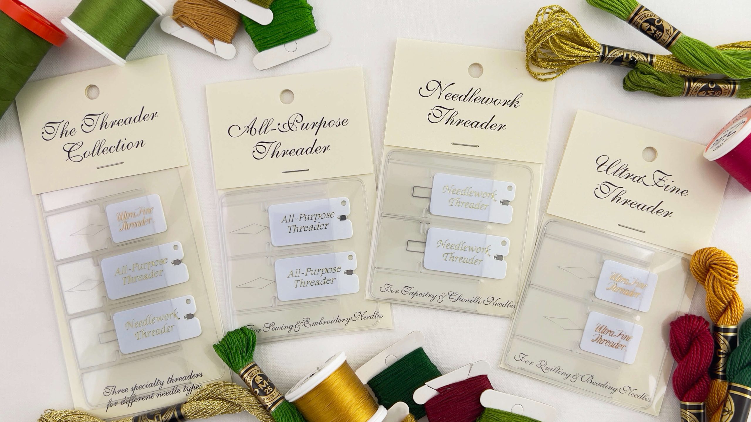 - Bonus! The All-Purpose and Needlework Threaders feature large, easy-to-grasp handles with a sharp, recessed blade for quick thread cutting. Use the handy hole to attach your threaders to a stitching project, chatelaine, lanyard, fob or your scissors, so they’re always within easy reach.